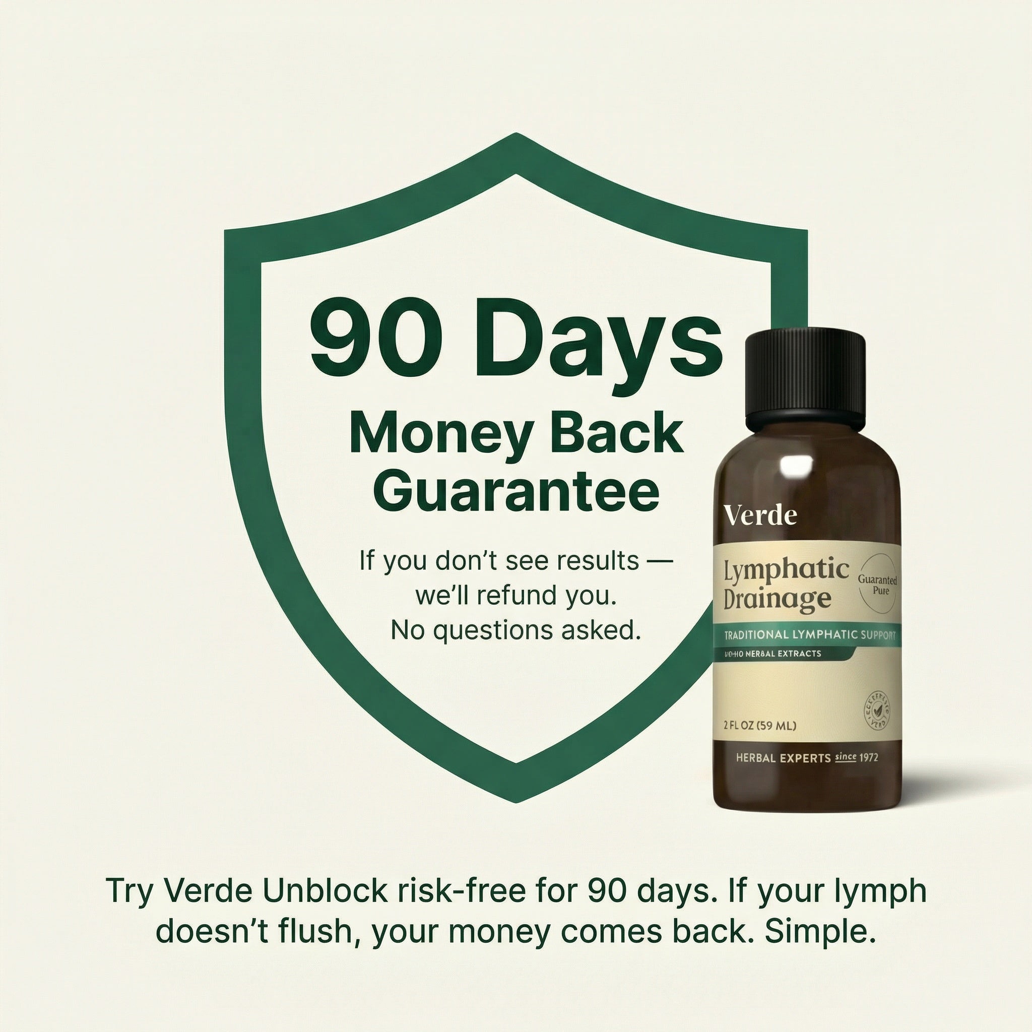 Verde Unblock uses a 4-herb proprietary blend — Cleavers Aerial Parts, Red Clover Flower, Stillingia Root and Prickly Ash Bark. These powerful botanicals work together to loosen sticky lymph valves, flush out trapped fluid and waste, and restore your body's natural drainage. No fillers, no stimulants — just plants that actually work.