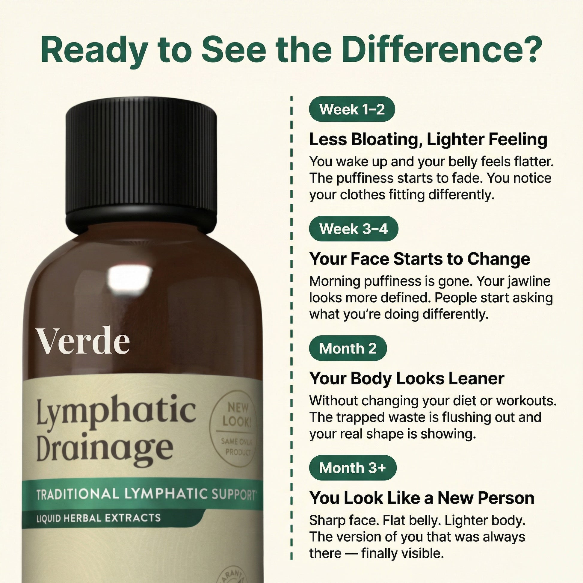 My face was so swollen and puffy all the time — I hated photos. Three weeks on Verde and my jaw is sharp, my cheekbones are showing. People think I lost weight but I didn't change a thing.